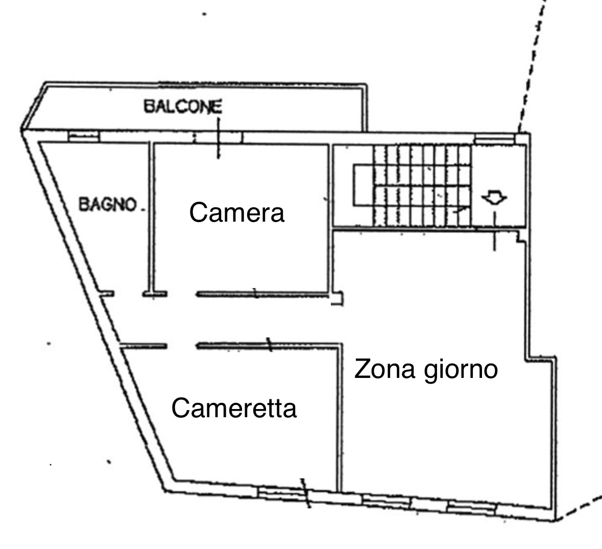 L’immobile, ubicato al secondo ed ultimo piano (senza ascensore), si compone di soggiorno ampio con cucina a vista, camino funzionante, corridoio di disimpegno, camera matrimoniale, cameretta, bagno finestrato, rcon box doccia e balcone.